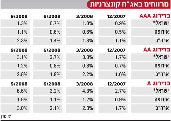 ובכל זאת, פרמיית הסיכון שהמשקיעים בישראל מייחסים לאג"ח של הפירמות גבוהה יותר מהפרמיה שמבקשים לקבל בארצות-הברית ובאירופה, שצרותיהן הכלכליות גדולות בהרבה. הקרחון העצום שנוצר בשוקי האשראי האמריקנים עדיין לא הגיע לכאן, ונקווה שגם לא יגיע.