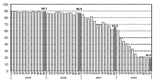 עם זאת יצוין שמחירי המכוניות ירדו בשנת 2008 ב-6.7%.