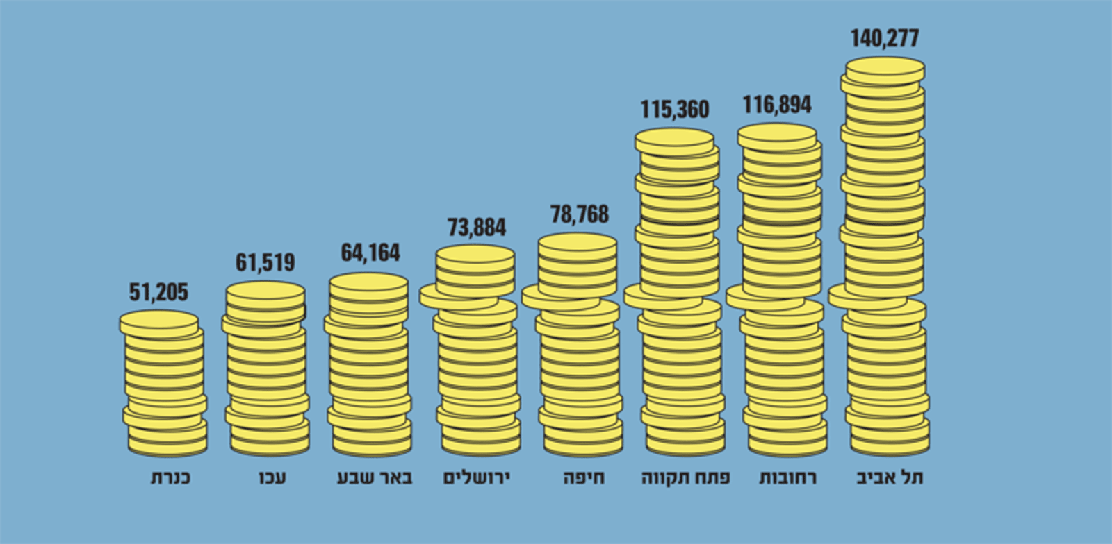 התוצר לנפש בישראל מחולק באופן בלתי שוויוני גאוגרפית, כך שבנפת תל אביב הוא כמעט פי 2 מזה של ירושלים, וכמעט פי 3 מזה של נפת כנרת (שכולל את טבריה וכפר מע'אר). גם גוש דן בהגדרתו הרחבה (תל אביב, רחובות, פתח תקווה) עשיר בהרבה משאר הארץ.