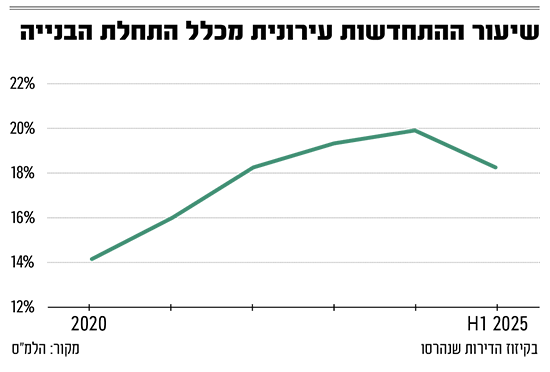 על פי המצטייר בנתוני המחצית הראשונה של השנה - המגמה הזו החלה להשתנות, ולראשונה מאז התחלת העשור, משקל התחלות הבנייה בהתחדשות העירונית ירד וחזר שלוש שנים לאחור, לנתוני 2022, כ־18%.