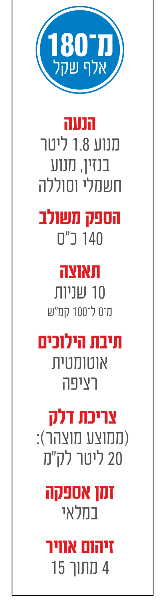 סובייקטיבית, המכונית מרגישה יותר זריזה ממה שמלמדים הנתונים היבשים. תגובת הדוושה חדה, תאוצות הביניים מרגישות נמרצות והתיבה הרציפה, שעברה כיול מחדש, משתפת פעולה ללא תלונות כשהיא נדרשת למאמץ. רק תחת עומס של האצה בעלייה או יציאה לעקיפה מהירה, מרים המנוע את קולו בצליל מחוספס.