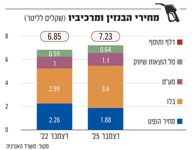 אף שמחיר הנפט היום נמוך יותר משהיה בדצמבר 2022, הדלק בכל זאת יקר יותר. איך זה יכול להיות? על כך אחראים בעיקר הבלו והמע"מ - שביחד התייקרו ב־71 אגורות לליטר. במילים אחרות: מה שלא בשליטת הממשלה הוזל, ומה שכן בשליטתה התייקר. אבל למה בעצם המסים היו יותר זולים תחת הממשלה הקודמת?