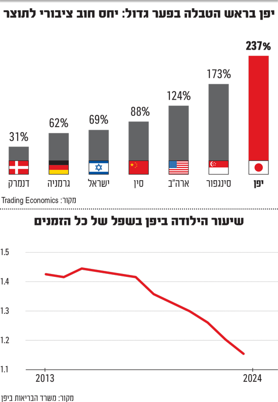 הגיל החציוני ביפן מתקרב ל־50, וכמעט שליש מהאוכלוסייה מעל גיל 65. המשמעות היא שיפן צריכה להקדיש חלק ניכר במיוחד מהכנסותיה לבריאות ולפנסיות, בלי מספיק עובדים שיתמכו בכך.