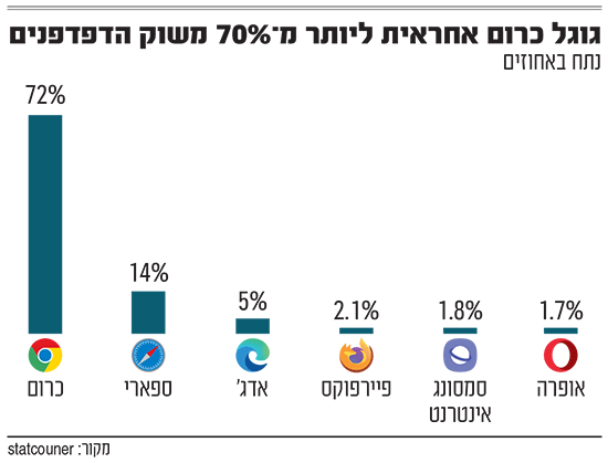 על פי נתוני statcounter שעוקבים אחרי נתח שוק שירותי האינטרנט, כרום של גוגל מחזיק היום מעל ל־70% מנתח השוק של דפדפני האינטרנט בעולם; ספארי של אפל עם כ־14%, בעוד ש־Edge של מיקרוסופט זוכה לכ־4%. דפדפנים כמו פיירפוקס או אופרה מחזיקים כ־2% נכון לספטמבר 2025.