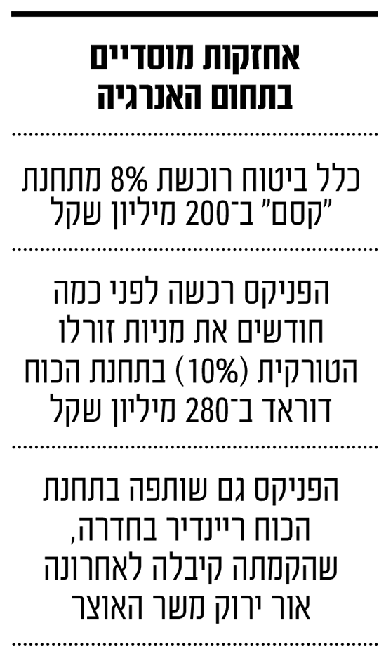 לפני שלושה חודשים השלימה ענקית הביטוח הפניקס עסקה שבה רכשה את מניות חברת זורלו הטורקית בתחנת הכוח דוראד (10%) באשקלון, תמורת 280 מיליון שקל.