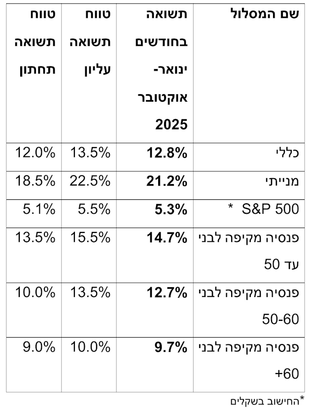 ברקוביץ מסכים גם הוא ומציין כי שנת 2025 מסתמנת כאחת השנים המיטיבות עם חוסכי קופות הגמל, ההשתלמות והפנסיה. בעשרת החודשים הראשונים של השנה צפויות הקופות לרשום תשואה חיובית ממוצעת של 12.8% במסלולים הכלליים. בשנת 2021, שהייתה השנה החזקה ביותר עד כה, נרשמה תשואה של 12% בעשרת החודשים הראשונים ו-14.3% בשנה כולה.