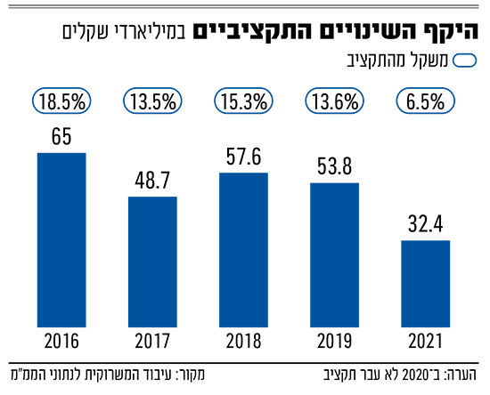 אותו מסמך של הממ"מ מספק נתונים בנושא לשנים 2016־2021. ב־2020 לא עבר תקציב, וב־2021 התקציב עבר רק בנובמבר אותה שנה, כך שלא היה זמן רב מדי לשינויים. אין לנו נתונים על שנת 2022, ואת השנים 2023־2025 כדאי להוציא מהמשוואה, כי הן נחשבות לחריגות בגלל המלחמה.