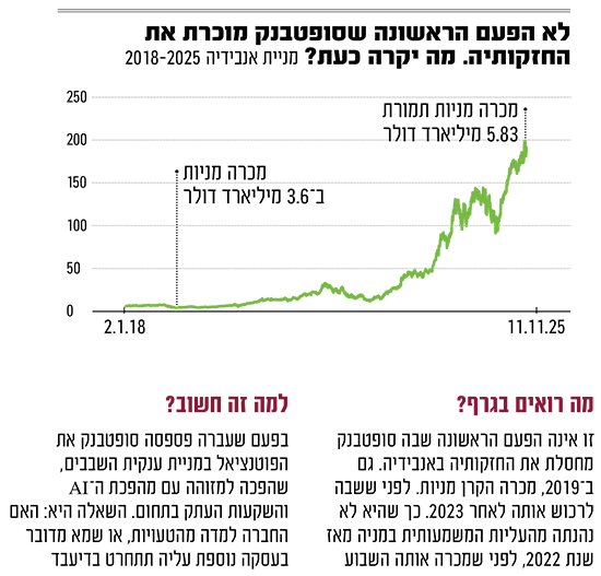 עבור סופטבנק לא מדובר בפעם הראשונה שבה היא מממשת מניות אנבידיה. בתחילת שנת 2019 מכרה הקרן את כל מניות אנבידיה שברשותה תמורת 3.6 מיליארד דולר. כך פיספסה סופטבנק תשואה פנומנלית של מעל 5,000% שרשמה החברה מאז המכירה. בשנים האחרונות חזרה והגדילה הקרן היפנית את השקעותיה במניית החברה עד למכירה השבוע. מה שמעלה את השאלה: האם גם הפעם הקרן המוערכת מפספסת או שמא מדובר בתמרור אזהרה עבור המשקיעים.
