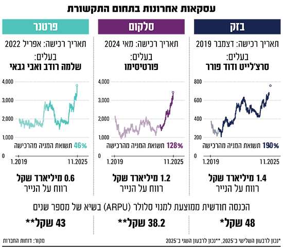 זה זמן מה שמתנהל מאבק בין חברות על הוט מובייל, והוא יגיע להכרעה בקרוב. חברת הסלולר הוט טלקום, שנמצאת על המדף, זוכה לעניין מצד מספר רוכשים אפשריים, ובראשם המתחרה פלאפון, לפי שווי נדיב למדי. גורמים אחרים שמצביעים על התאוששות התחום הם שיפור ברווחיות החברות, הודות לייעול ולהגדלת הכנסות ממנויים, ואף משקיעים זרים שחוזרים להתעניין. בד בבד זינקו מניות התקשורת בבורסה בשיעורים דו־ספרתיים מתחילת השנה, אחרי עליות גם במחצית השנייה של 2024. בסה"כ מאז שפל השנתיים האחרונות עלו מניות בזק, פרטנר וסלקום ב־149%, 169% ו־224% בהתאמה.