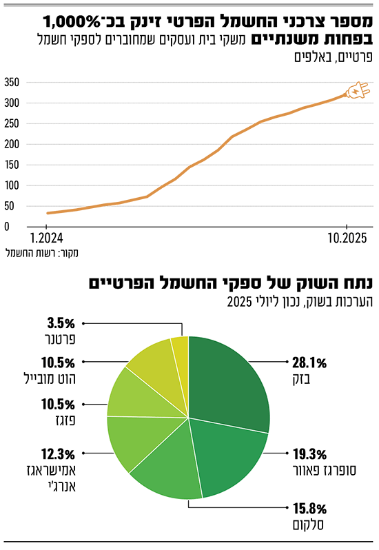 ובכל זאת, מדובר בשוק שעדיין בחיתוליו וכל החברות בו עדיין הפסדיות. זאת בשל מחסור בחשמל זול שניתן לקנות באופן פרטי, יחד עם התחייבות להנחה על כל תעריף החשמל. בזק, שהיא ספק החשמל הפרטי הגדול ביותר בישראל, עם יותר מ־80 אלף לקוחות, הפסידה 20 מיליון שקל על אספקת חשמל פרטי מינואר עד ספטמבר 2025, לעומת הפסד של 6 מיליון שקל בלבד בתקופה המקבילה ב־2024. רוב הספקים הפרטיים כלל לא מפרסמים לציבור את הפסדיהם ממגזר זה.
