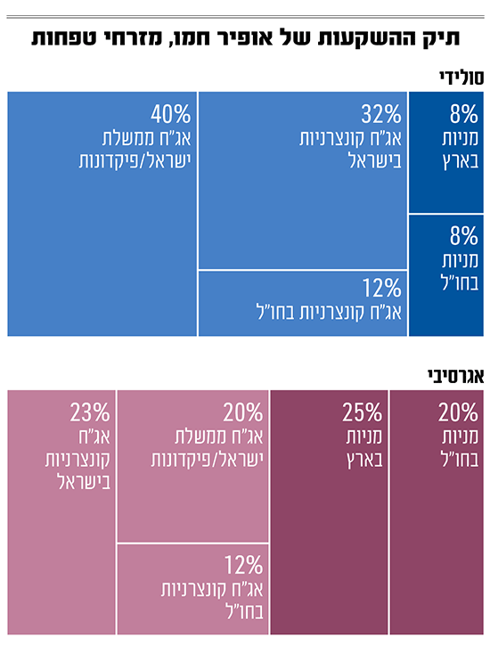 כשאנחנו מבקשים מחמו להרכיב תיקי השקעות, הוא ממליץ למשקיע סולידי להיחשף למניות בשיעור של 16% בלבד (חצי בישראל והיתר לחו"ל). את החלק האג"חי הוא מחלק בין 40% אג"ח ממשלת ישראל ופיקדונות, עוד 32% לאג"ח קונצרניות בישראל ו-12% לקונצרניות בחו"ל. עבור משקיע אגרסיבי הוא מקצה 45% למניות (25% למניות בישראל ו-20% למניות בחו"ל). עוד 20% הוא מקצה לאג"ח ממשלת ישראל או פיקדונות, 23% לקונצרניות בישראל וגם כאן 12% לאג"ח קונצרניות בחו"ל.
