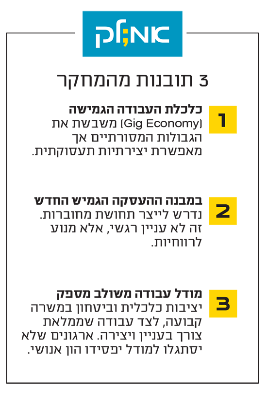 המיומנות הניהולית הופכת למנהיגות של יצירת גשרים במציאות של אי ודאות. השאלה אינה עוד: 'כיצד נחזיר את העובד המסורתי'?, אלא איך נאפשר תחושת מחוברות גם במבנה העסקה חדש, גמיש, משולב ורב־שלבי.