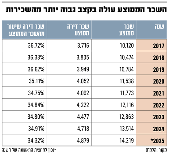 אותו ישראל ישראלי, שמתגורר בדירה הממוצעת, חווה בשנים האחרונות העלאות שכר דירה חוזרות ונשנות. מאז שנת 2017, זינק שכר הדירה הממוצע ב־31%. הקפיצה המרכזית הייתה בשנים 2023 ו־2024, כתגובה להעלאות החדות של ריבית בנק ישראל. הריבית יקרה מאוד את החזרי המשכנתאות של בעלי הדירות, שבתורם גלגלו חלק מהעלויות על השוכרים במועד חידוש החוזה או חילופי דיירים.