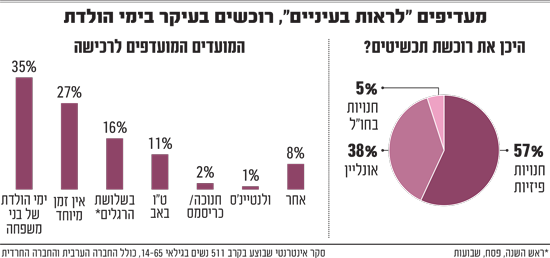 ההשפעה ניכרת גם בדפוסי הרכישה. בסקר הצרכנות שערכנו, נמצא כי השוק סטטי יחסית בגודלו (גם מדד שוק האופנה קטן ב־9% בשנתיים). מרבית הרכישות (35%) מתבצעות סביב ימי הולדת, ועוד כ־16% בחגים ו־11% בט"ו באב. המשמעות היא שהשחקנים בשוק נלחמים על אותם "פיקים" של ביקושים במהלך השנה.