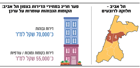 אותו בניין בתל אביב, שתי דירות שונות ופערים של עשרות אחוזים במחיר למ"ר