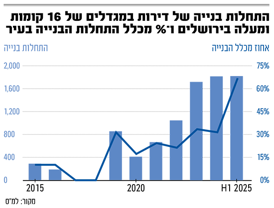 מדובר בשיא של בנייה מגדלית, שעולה על הכמות השנתית של התחלות בנייה כאלה בכל אחת מהשנים שעברו. בשנים האחרונות הבנייה במגדלים של 16 קומות ומעלה מניבה למעלה מ־30% מהדירות המוקמות בעיר.