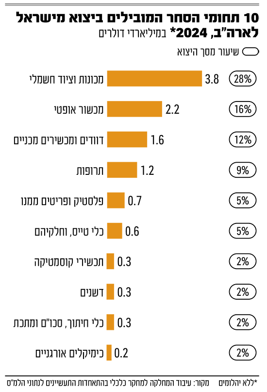 ארה"ב היא שותפת הסחר הגדולה ביותר של ישראל. ב־2024 עמד יצוא הסחורות על 17.3 מיליארד דולר ויצוא השירותים על 16.7 מיליארד דולר, לעומת יבוא של 9.3 מיליארד דולר בסחורות ו־4.8 מיליארד בשירותים. כיום כ־70 אחוזים מיצוא הסחורות כפוף למכסים החדשים. לישראל יש הסכם סחר חופשי עם ארה"ב משנת 1985, וההסכם החדש בחקלאות מחליף הסדר קודם מ־2004.