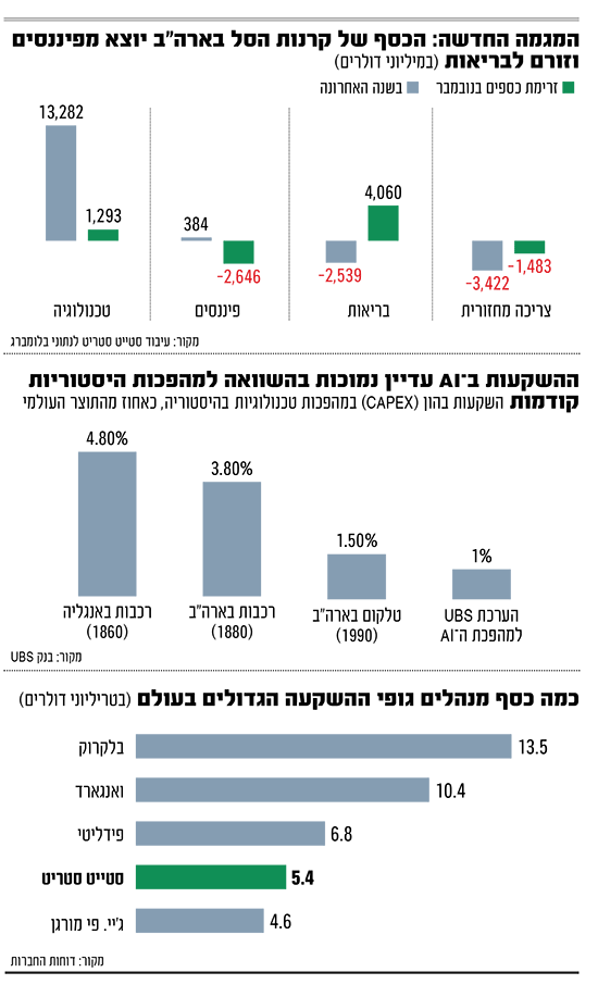 מי שהתייחסה לשינוי הזה היא חברת סטייט סטריט (State Street), אחת מחמש מנהלות הנכסים הגדולות בעולם, עם נכסים פיננסיים מנוהלים ישירות בהיקף של 5.4 טריליון דולר. שווי השוק של החברה, הנסחרת בבורסה של ניו יורק, עומד על 34 מיליארד דולר.