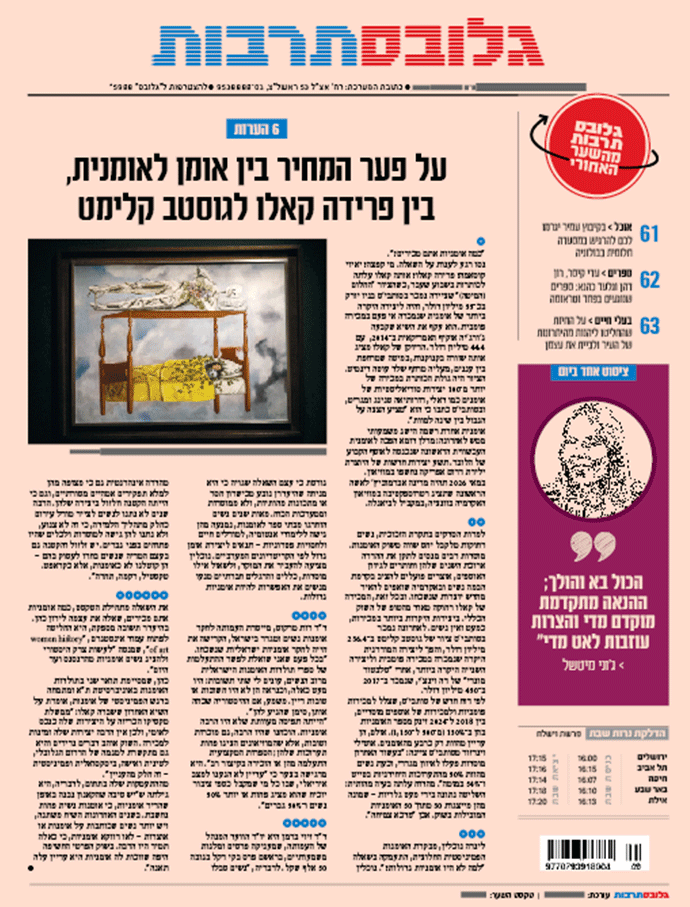 כהן, שמסיימת תואר שני בתולדות האומנות באוניברסיטת ת"א ומתמחה בדגש הפמיניסטי של אומנות, אומרת על השיא האחרון ששברה קאלו: "ממשלת מקסיקו הכריזה על היצירות שלה כנכס לאומי, ולכן אין הרבה יצירות שלה זמינות למכירה. השוק אוהב דברים נדירים והיא גם מתקשרת למגמה של הדרום הגלובלי, לטינית ואישה, ביסקסואלית ופמיניסטית - זה חלק מהעניין".