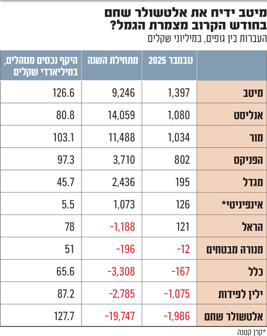 כך, בחודש נובמבר טיפס מיטב לצמרת המגייסים והעביר ממתחריו לא פחות מ-1.4 מיליארד שקל ומתחילת השנה כבר הצליח לגייס 9.2 מיליארד שקל. מנגד, אלטשולר שחם איבד למתחרים עוד 2 מיליארד שקל ומתחילת השנה כבר איבד כמעט 20 מיליארד שקל.