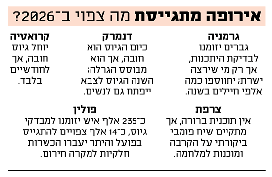 בכל מקרה, המהלך נועד לעודד את הפולנים לרצות להתגייס, להתחיל לשנות את הלך הרוח. בדנמרק, אחת המדינות היחידות שמפעילה גיוס כללי, אך משתמשת בהגרלה כדי לבחור מי אכן יצטרף לצבא (ולא מסובך לוותר על כך מסיבות שונות), ייפתח הגיוס בשנה הקרובה גם לנשים. קרואטיה תצטרף ב־2026 לקומץ מדינות אירופיות שבהן נהוג גיוס חובה (כמו יוון), ותתחיל בשנה הקרובה בשירות חובה. אבל הוא יעמוד על חודשיים בלבד בשלב הנוכחי.