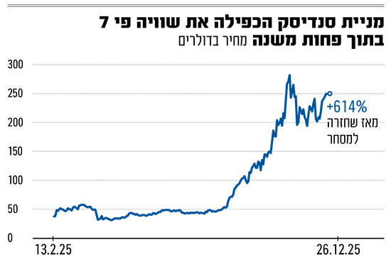 מניית סנדיסק זינקה השנה בשיעור מסחרר של 614%, והיא אפילו לא נסחרה מתחילת השנה. מנייתה חזרה להיסחר בנאסד"ק בחודש פברואר האחרון לאחר שהחברה השלימה פיצול מחברת Western Digital, שרכשה אותה עשור לפני כן.
