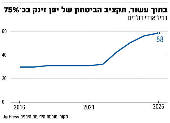 טיוטת התקציב לשנת הכספים 2026, שתיפתח באפריל, גבוהה - לעומת השנה הקודמת, והיא מהווה את השנה הרביעית בתוכנית החומש שבמסגרתה מתחייבת יפן להכפיל את היקף ההוצאה הביטחונית ל-2% מהתמ"ג שלה.