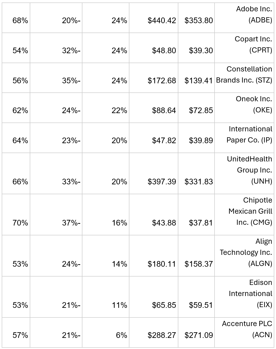 מתוך 171 המניות ב-S&P 500 שרשמו תשואה שלילית עד ה-26 בדצמבר, 51 מתוכן ירדו ב-20% לפחות; מתוכן, במרקטוואץ' בחרו 20 מניות שמרבית ההמלצות עליהן הן "קנייה" או דירוגים שווי ערך לכך, ושמסקרים אותן חמישה אנליסטים לפחות.