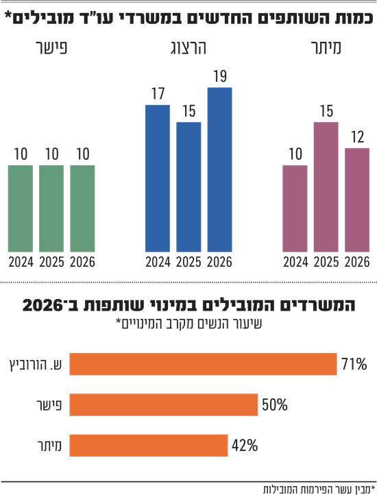 לפי בדיקת גלובס, במשרד מיתר, הראשון בגודלו בישראל עם כ־550 עורכי דין, קודמו השנה 12 שותפים, כאשר בשנה שעברה היו 15 מינויים שכאלה. במשרד הרצוג, השני בגודלו עם 512 עורכי דין, קודמו 19 שותפים חדשים - מספר שיא בתולדות המשרד. מדובר בקפיצה משמעותית, במיוחד על רקע שנתיים מאתגרות של מלחמה ואי־ודאות כלכלית.