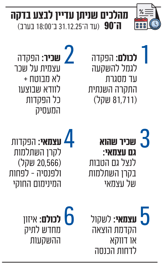 יממה אחת בלבד נותרה לסיומה של שנת 2025. אם לא ניצלתם עדיין את מכשירי החיסכון והטבות המס הבאות, יום ד' השבוע יהיה האחרון שבו תוכלו לעשות זאת. כך שפעולה מהירה עשויה להיות שווה לכם הרבה מאוד כסף.