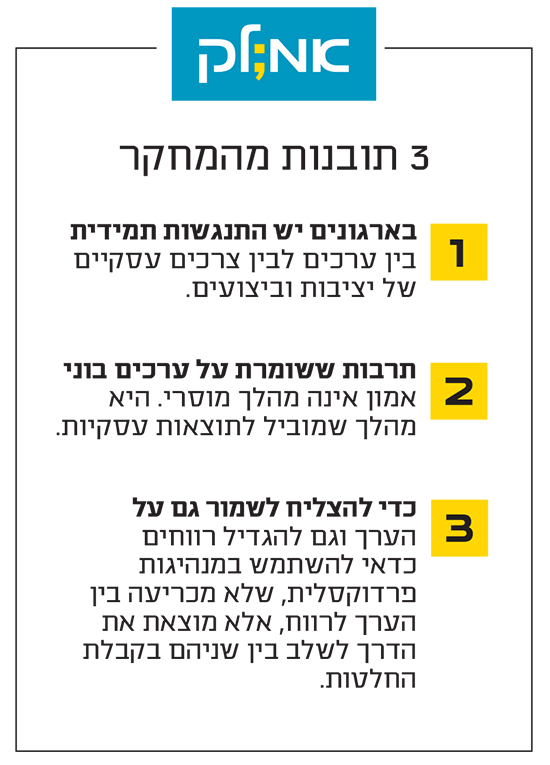 בארגונים יש התנגשות תמידית בין ערכים לבין צרכים עסקיים של יציבות וביצועים.