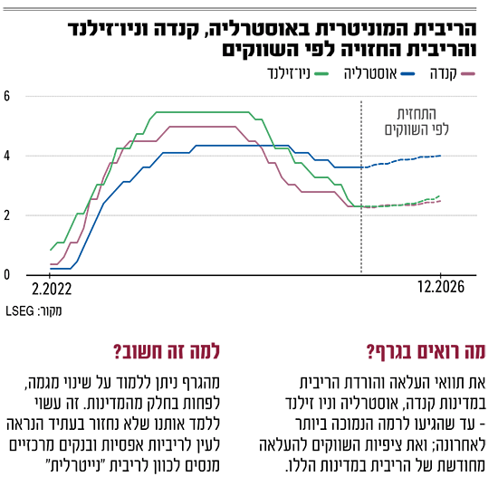 "כל אלו גורמים בעלי אוריינטציה אינפלציונית במבט קדימה. בחלק מהמדינות העלאה מסוימת מתומחרת כבר ב־2026. מדובר במדינות כמו אוסטרליה, גוש האירו וקנדה. לא רק השווקים צופים זאת, גם הטון של הבנקים המרכזיים שלהן השתנה. בבנק האירופי המרכזי נאלצו לחדד שלא תהיה העלאת ריבית בקרוב, אחרי שהשווקים הבינו מהשינוי בטון של ההחלטה האחרונה שזו הולכת להגיע".