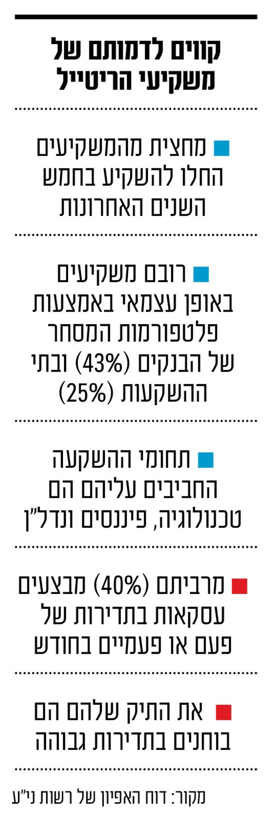 "המבחן האמיתי של השוק יהיה בגל ירידות אמיתי, אז נוכל לבחון את הקיבולת של משקיעי הריטייל", אומר הרשקוביץ מאיילון. "נשאלת השאלה אם החבר'ה האלה מבינים את הסיכון בכל מיני השקעות, והאם הם יודעים מתי ואיך לצאת מההשקעה?