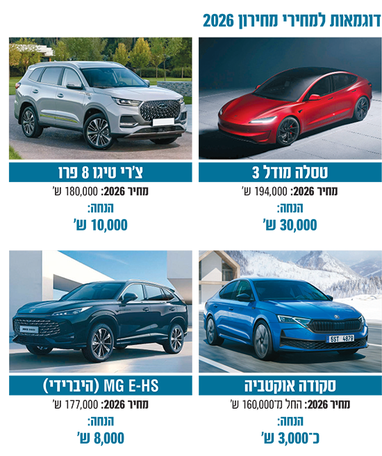 אלו הן רק דוגמאות ממחירוני פתיחת 2026. חשוב להדגיש: לא מדובר במבצעי הוזלות או "אפס קילומטר" חולפים, אלא בשינוי של מחירי המחירון הרשמיים. אלה, ככל הנראה, יהוו בהמשך בסיס להנחות והטבות נוספות ללקוחות הפרטיים והמוסדיים כאחד.