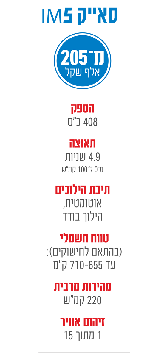 מכונית הפרימיום-סדאן החשמלית של סאייק ועליבאבא, סאייק IM5, מציגה עיצוב בעל נוכחות, תא נוסעים איכותי ומאובזר היטב, טווח מכובד וביצועים מרשימים ● הבונוס הוא התנהגות כביש עם תחושה אירופית ● המחיר תחרותי, אבל לא ברור אם זה יספיק כדי להעניק לה יתרון משמעותי בפלח הצפוף