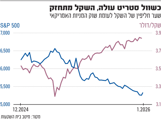 אלכס זבז'ינסקי, הכלכלן הראשי של מיטב, הסביר כי "הקשר הזה שקיים שנים למעט 2023 ומעט בשנת 2024 כבר לא מובהק כשהיה. בדרך כלל היה מקדם, כך שכל עלייה של אחוז במדד S&P 500 השקל מתחזק ב־0.3%, אבל הפעם השקל התחזק הרבה יותר".