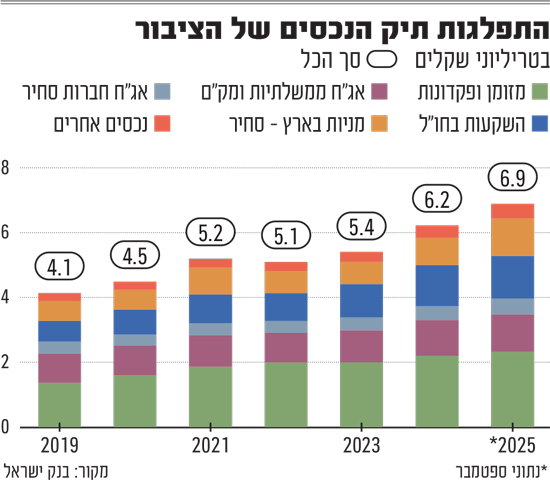 הפרסום האחרון של בנק ישראל מלמד על מספר התפתחויות מעניינות בהקשר זה. לפי הנתונים, ברבעון השלישי של 2025, יתרת התיק עלתה בכ-4% (265 מיליארד שקל), ועומדת על 6.9 טריליון שקל - הנתון הגבוה ביותר שנרשם עד כה. המרכיב שזינק באופן החד ביותר היה המניות בארץ - שרשמו עלייה של 6.8%, המוסברת בעיקר על ידי עליית המחירים. לצידן רשמו עליות בולטות גם אג"ח חברות (6.6%) והשקעות בחו"ל (5.9%).