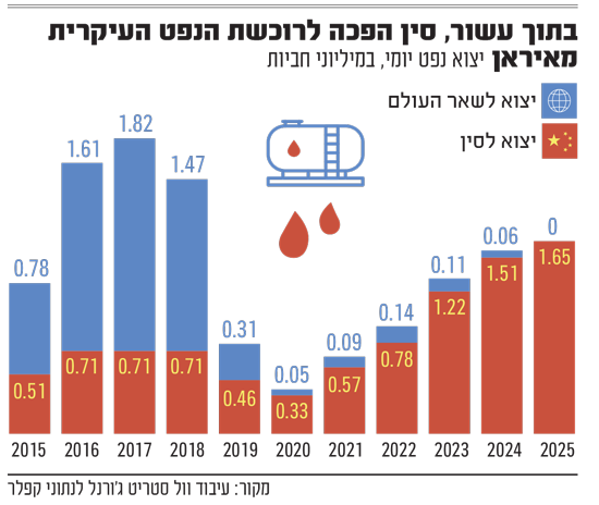 מאז המלחמה עם ישראל ביוני, טהרן הצליחה לייצב את נפחי יצוא הנפט שלה למרות הסנקציות, ואף להגדיל אותם בחודשים מסוימים. באוקטובר היא שלחה כמעט שני מיליון חביות ביום - שיא רב שנתי, לפי קפיטל אקונומיקס. בשנת 2025 כולה, איראן מכרה יותר נפט מאשר בכל שנה אחרת מאז 2018.