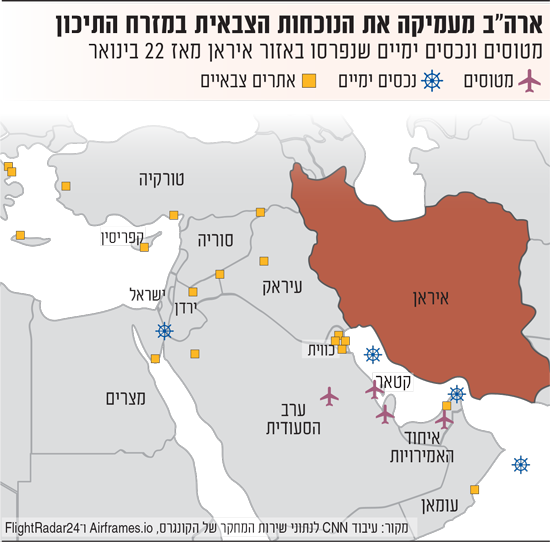 "הפריסה האמריקאית במזרח התיכון מייצרת 'יכולת כפולה'", אומרת פינס פלדמן. "מצד אחד זה מקרב אותנו לתקיפה אמריקאית, כי הכוחות מאפשרים הוצאה לפועל מיידית של פעולה התקפית באיראן אם טראמפ יחליט על כך. מצד שני, זה מקנה מעטפת הגנה מרחבית טובה יותר במקרה של תגובת נגד איראנית, במטרה לצמצם את הסיכון להידרדרות למלחמה אזורית, להגן על בעלות בריתה ועל נכסים אמריקאים באזור. עם זאת, ייתכן שנמצא עצמנו במצב כמו בוונצואלה - המערכת תהיה דרוכה זמן מה עד לקבלת החלטה או קריסה ברורה של התהליך הדיפלומטי".