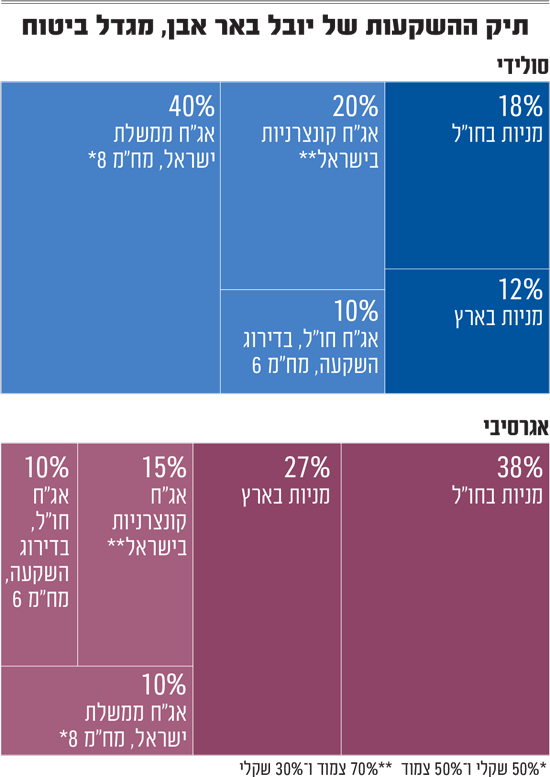 כשאנחנו מבקשים מבאר אבן לבנות תיק השקעות הוא מציע למשקיע סולידי להקצות 12% למניות בישראל ו־18% למניות בחו"ל. הוא מקצה 40% לאג"ח ממשלת ישראל במח"מ ארוך יחסית של 8 שנים.