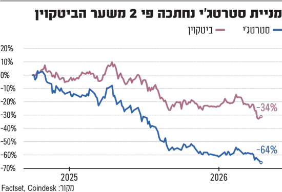 בסוף השבוע האחרון, הביטקוין ירד מתחת אל מתחת ל־76 אלף דולר, סביב המחיר הממוצע שסטרטג'י שילמה עבור הטוקנים שלה. משמעות הדבר היא שהחברה, שנקראה בעבר מיקרוסטרטג'י, רשמה הפסדים על הנייר. מניית סטרטג'י, המחזיקה ביותר מ־700 אלף מטבעות ביטקוין, ירדה ב־7% ביום שני, וב־61% מאז שהביטקוין הגיע לשיאו ב־6 באוקטובר.