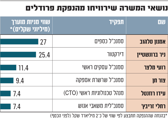 אל הקבוצה הזו צפויים להצטרף בתקופה הקרובה גם שורה של מנהלים בחברת פרודלים, שמקדמת הנפקה ראשונית בתל אביב. במקרה שההנפקה תצא אל הפועל, צפויים שישה מנהלים שכירים בחברה להחזיק באופציות למניות, ששווין הכולל עומד על כמעט 90 מיליון שקל.