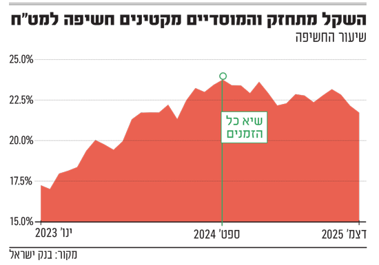 ניתוח ארוך־טווח של נתוני בנק ישראל מעלה כי כיום כחמישית (21.7%) מנכסי הציבור מושקעים במט"ח (כולל חשיפה דרך נגזרים) - סכום של כ־226 מיליארד דולר, כטריליון שקל. מדובר ברמה הנמוכה משיא הבהלה שנרשם בספטמבר 2024 (ערב מבצע הביפרים), אז עמדה החשיפה על 23.7%. עם זאת, במונחים כספיים מדובר היה אז בסכום נמוך יותר - כ־175 מיליארד דולר בלבד - משום שמאז גדל תיק הנכסים, הן הודות לתשואות והן בעקבות זרימת מט"ח מעסקאות בהייטק ובתעשיות הביטחוניות.