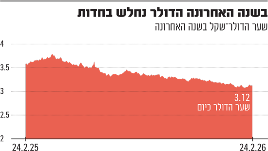 בשלושת החודשים האחרונים, השקל התחזק מול הדולר ביותר מ־4%. לצד מגמת היחלשות הדולר בעולם, התחזקות השקל בחודשים האחרונים נרשמת על רקע גאות בבורסה בתל אביב, עסקאות ענק בהייטק ובתעשייה הביטחונית ומגמת מעבר של משקיעים ממסלולי חו"ל למסלולים מקומיים.