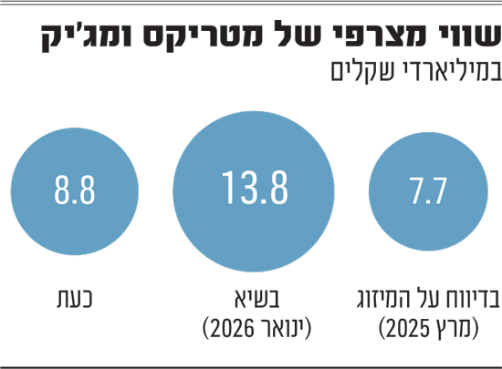 בזמן הדיווח על המיזוג במרץ בשנה שעברה, השווי המצרפי של שתי החברות עמד על 7.7 מיליארד שקל. בהמשך, שתי המניות זינקו והשווי המצרפי שלהן הגיע בחודש שעבר לכ-13.8 מיליארד שקל, מה שמיצב את החברה הממוזגת כמועמדת אפשרית להיכנס למדד ת"א 35. אלא שהנפילות החדות במניות ה-IT בשבועות האחרונים לא פסחו על שתי המניות, כשמטריקס איבדה 36.4% משוויה מאז אמצע ינואר ומג'יק איבדה בתקופה זו 35.7%. טרום המיזוג, השווי המצרפי של שתי החברות עמד על 8.8 מיליארד שקל, שווי שלא צפוי להכניס אותה למדד ת"א 35 בעדכון הקרוב.
