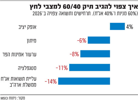 היועץ הפיננסי ישראל עטיה, מנכ"ל המרכז לתכנון פיננסי, מזכיר את היתרונות של תיק 60/40: "בתרחיש שבו החשש הוא מהאטה כלכלית ולא מאינפלציה, אג"ח איכותיות עדיין יכולות לספק כרית ביטחון והגנה מסוימת אל מול הפסדים במניות", הוא אומר.