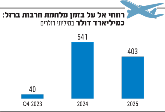 גם בשנה שבה נפגעה משקל חזק, מלחמה באיראן והפרשה לקנס של רשות התחרות, הרוויחה חברת התעופה 403 מיליון דולר - ירידה של 26% מ–2024 • הבונוס לכל טייס: מעל 170 אלף שקל ויותר מכפול מתחילת המלחמה • והיכן מתכנן המנכ"ל להשקיע את המיליארדים שבקופה