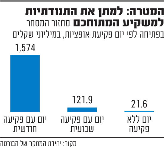 בבורסה מקווים שעם השקת האופציות היומיות, בכל יום יזנק המסחר בפתיחה, ויאפשר גם לגופים גדולים יותר, כמו מוסדיים, להשתתף בו .