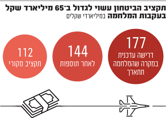 למעשה, כבר בעת אישור התקציב בממשלה בסך ל 112 מיליארד שקל למערכת הביטחון היה ברור שהתקציב לא רלוונטי. אז, הם התפשרו לכאורה על גיוס של 40 אלף אנשי מילואים בכל זמן נתון, תוך הבנה שמבצע מול איראן יתקיים בחודשים שלאחר מכן. מרגע שהגזרה התחממה, עוד טרם פתיחת המערכה, מספר אנשי המילואים עלה בהדרגה לכ־60 אלף ועומד כעת על קרוב ל-100 אלף. הרחבת המערכה בלבנון עשויה אף לדרוש גיוס נרחב עוד יותר.