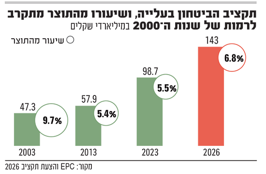 הסעיף הבולט ביותר כולל 143 מיליארד שקל לתקציב הביטחון, שקפץ דרמטית בעקבות המלחמה עם איראן. בממשלה יש ביקורת רבה על כך, משום שהתקציב שסוכם עם אישור התקציב בממשלה עמד על 112 מיליארד שקל, ובמערכת הביטחון ובמשרד האוצר ידעו כבר אז שהוא ייפרץ בעקבות מלחמה צפויה מול איראן.